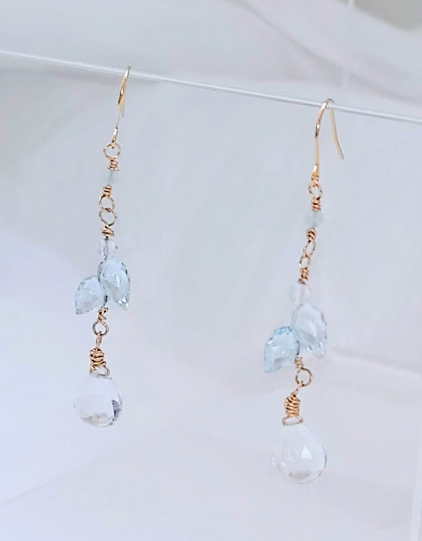 ・天然石:宝石質ブルートパーズつぼみドロップ 約6~7mm 、宝石質ホワイトトパーズペアシェイプブリオレットカット、水晶、アマゾナイト