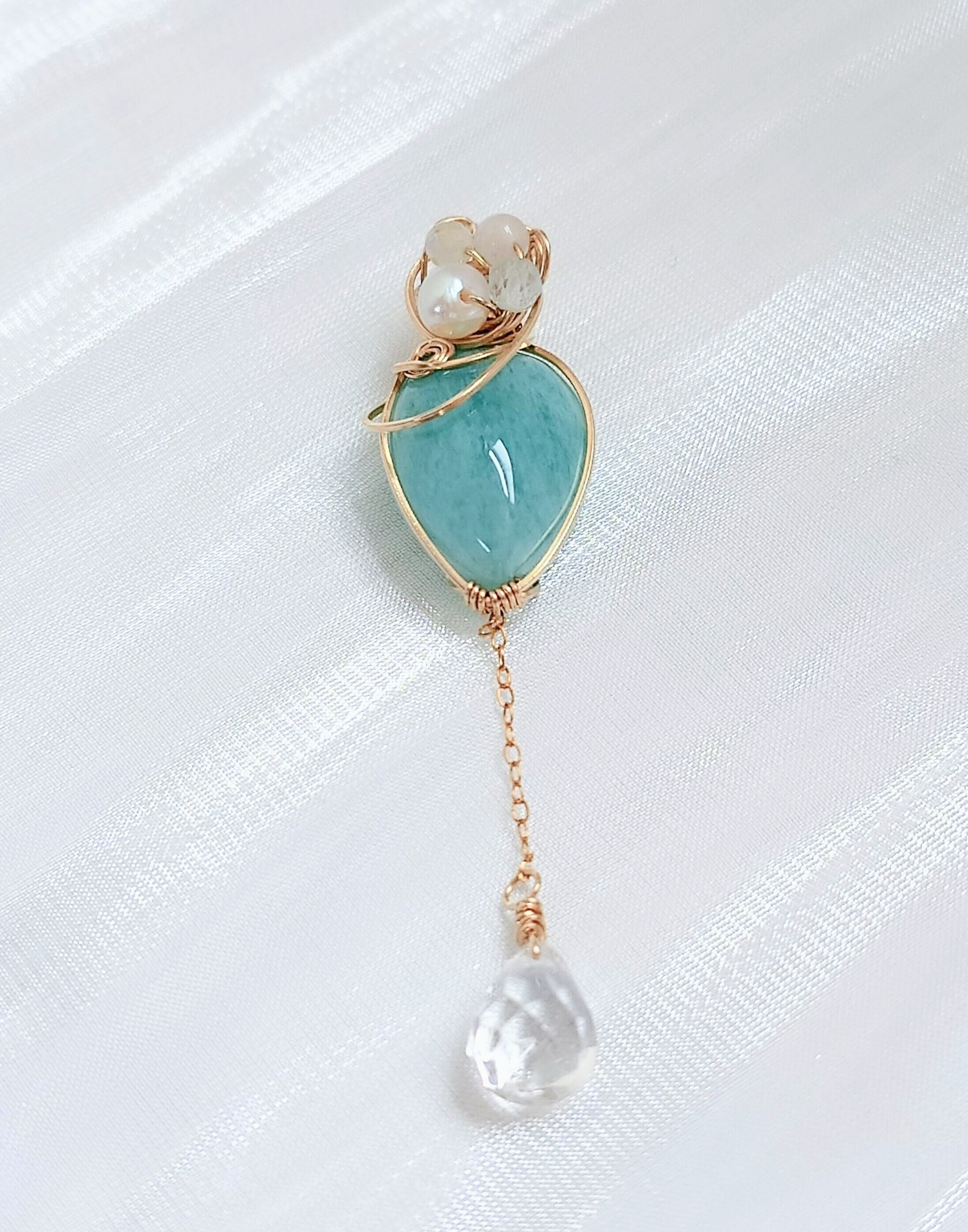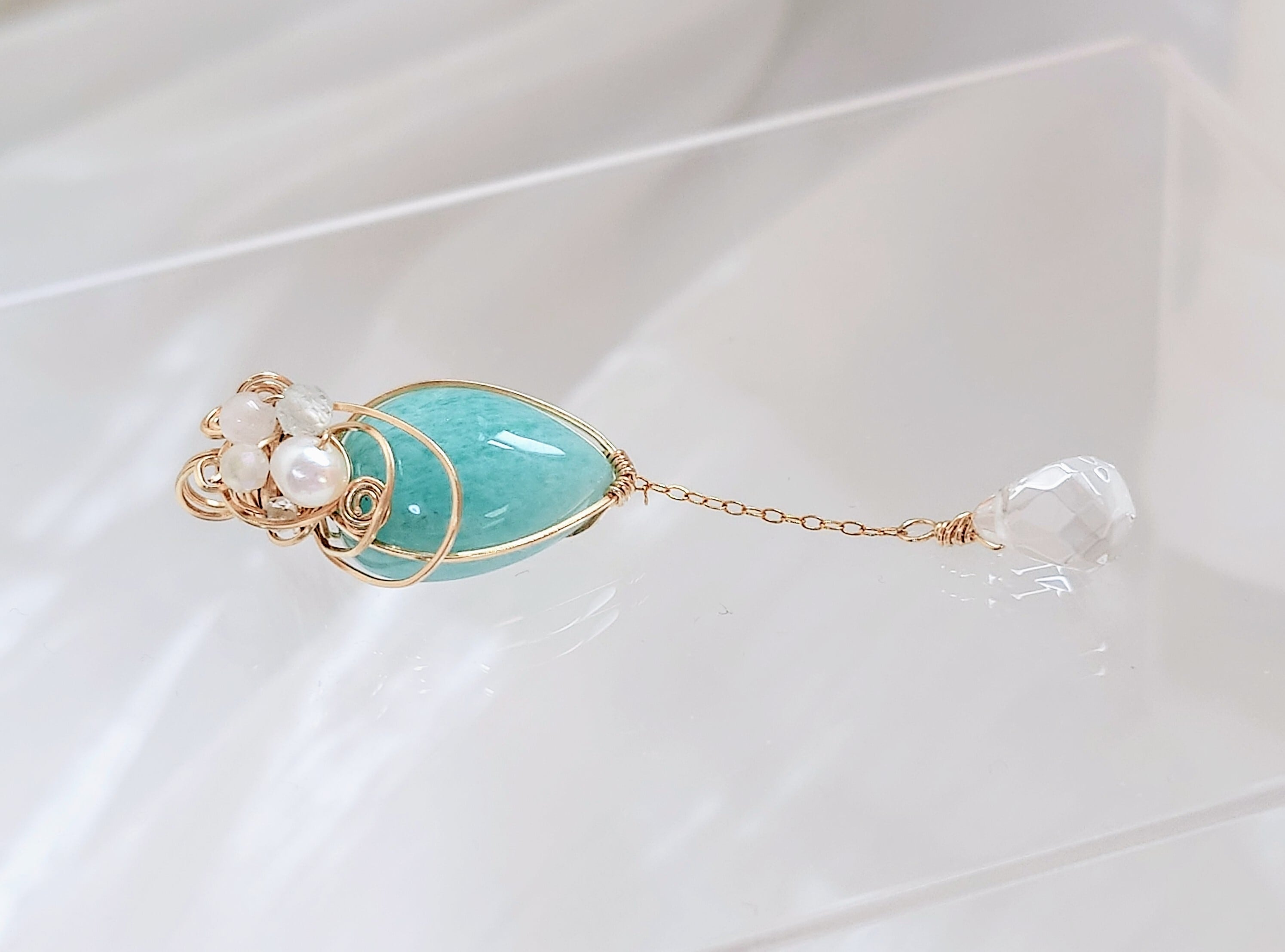・天然石:宝石質アマゾナイトAAAペアシェイプカボション、淡水パール、ローズクォーツ、水晶、ムーンストーン、水晶ドロップブリオレットカット